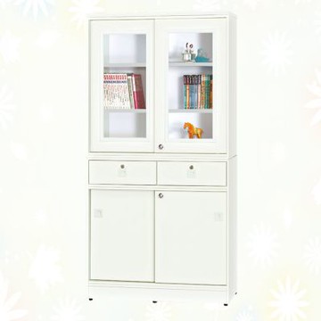 文創集 南亞塑鋼 尼拉多彩3尺雙層四推門二抽屜高書櫃(七色可選)-91x40.8x180cm免組