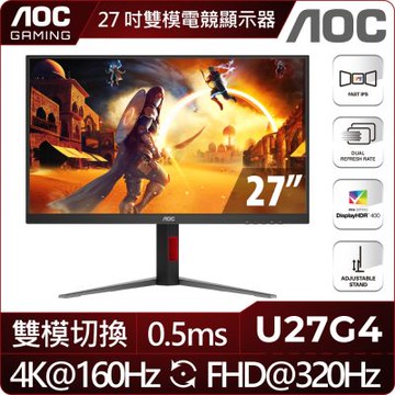 AOC U27G4XM QD-Mini LED 4K雙模電競螢幕(27型/UHD/320Hz/1ms/FastIPS/可升降旋轉腳架)