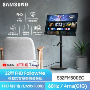 【Samsung 三星】FollowMe移動式 AI 智慧聯網螢幕組★S32FM501EC 32型 M5 FHD 智慧聯網螢幕
