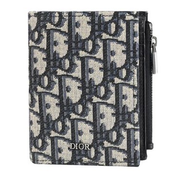 Christian Dior 滿版緹花LOGO對開4卡零錢短夾.深藍