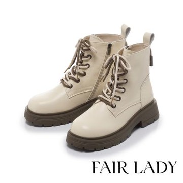 RIN RIN 綁帶馬丁靴 米 女鞋