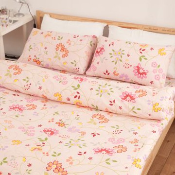 單人3尺床包(含枕套) 100%精梳棉【陶醉粉花】精品純棉、大鐘印染、台灣製造