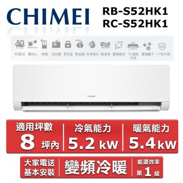 【奇美CHIMEI】星揚系列一級變頻冷暖分離式冷氣《RC-S52HK1/RB-S52HK1》