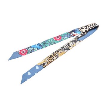 HERMES 愛心豹紋圖騰迷你Twilly絲巾領結(迷你-藍色)