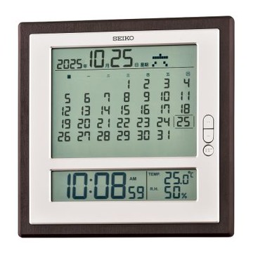 SEIKO 日本精工 日曆星期,溫溼度 電子鐘 靜音掛鐘(QHL100B)24.6cm
