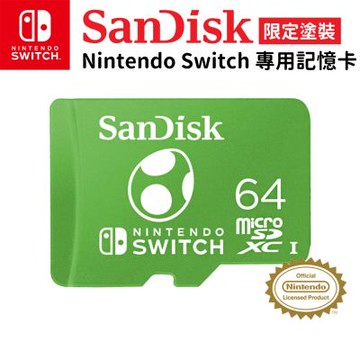 【SanDisk 晟碟】64G 任天堂 NS SWITCH 專用記憶卡(綠色;耀西塗裝/原廠永久保固)