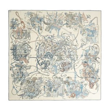 點我下載Hermes 愛馬仕 Le Monde d Hermès 140披肩 (白色/板岩深灰/大象灰)