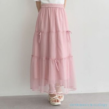 2WAY抽繩設計層次紗裙-附內襯(1K44L0L0300) - earth music&ecology
