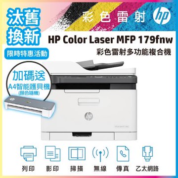 滿額現折180★HP 惠普Color Laser MFP 179fnw 彩色雷射複合機
