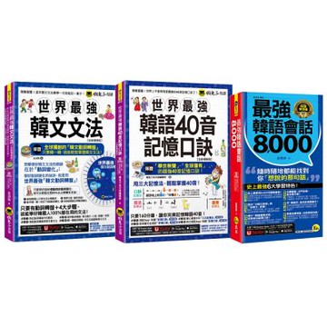 世界最強韓文文法【全新增修版】+ 世界最強韓語40音記憶口訣 【全新增修版】+ 最強韓語會話8000