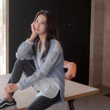 (S) 【安于晴Charlene私服】質感修身短版假兩件白色長袖上衣二手衣
