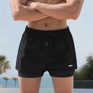 雙層泳褲男 防尷尬寬松速干泡溫泉沙灘褲 海邊休閑男士平角游泳褲