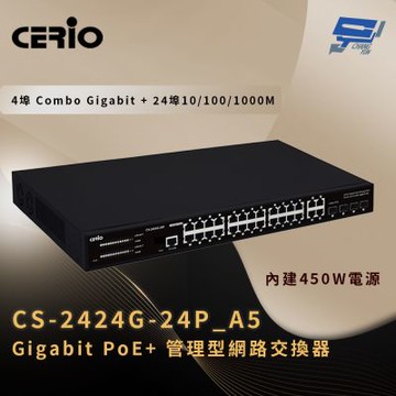 昌運監視器 CERIO 智鼎 CS-2424G-24P_A5 4埠 Combo Gigabit + 24埠 10/100/1000M Gigabit PoE+ 管理型網路交換器 450Watt