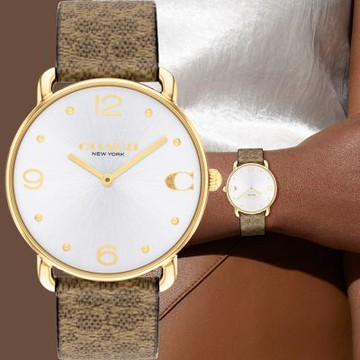 COACH 官方授權 彩點C LOGO 皮帶女腕錶(CO14504206)36mm