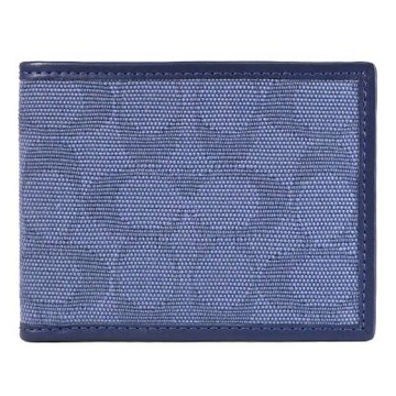 COACH 男款 荔枝紋浮雕LOGO六卡短夾-藍色