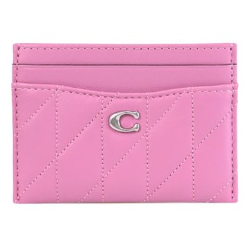 COACH CM434 質感絎縫皮革隨身名片卡夾.淺紫紅