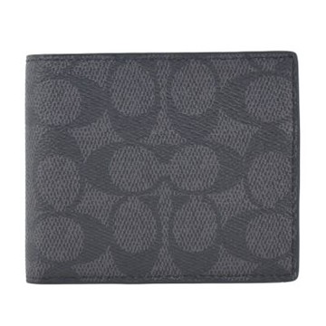 COACH 黑經典LOGO款兩件式短夾 皮夾