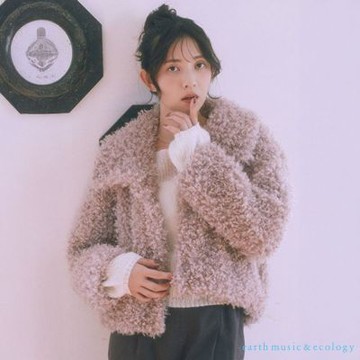 〚earth music〛貴賓犬軟毛絨翻領中短版大衣外套
