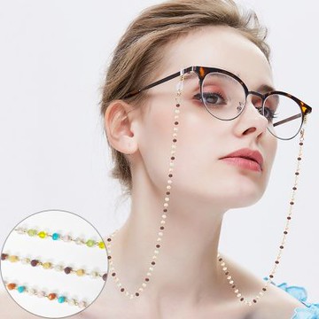 seoul show首爾秀 混色水晶鍊兩用口罩掛繩鏈墨鏡平光眼鏡鍊老花近視防丟鍊