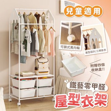 【慢慢家居】可愛屋型兒童掛衣架 鐵藝零甲醛 兒童衣櫃 衣帽架 收納(預購預計2/24開始陸續出貨)