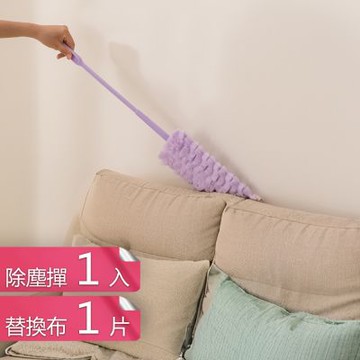 【荷生活】長柄扁平強認可彎清潔除塵撣 加長型可替換免洗縫隙除塵毛刷-主體1入+替換布1片組