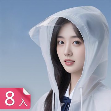 荷生活 大帽檐不濕臉長下擺便攜雨衣 循環使用易收納透氣不悶輕便雨衣-8入組