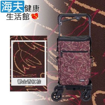 海夫健康生活館 鋁合金 四輪助行車 購物車 (酒紅色)