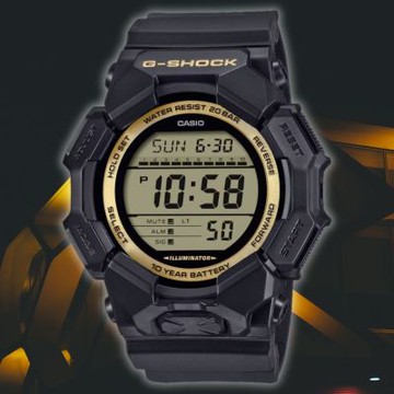 CASIO卡西歐 G-SHOCK GD-010系列 GD-010GB-1A9 10年電力數位錶 黑金 51.9 mm