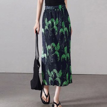 綠色薔薇印花 三宅風手工壓褶無袖高領背心 僅上衣
