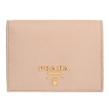 PRADA 1MV204 浮雕LOGO防刮對開零錢短夾.淺粉
