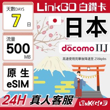 LINKGO白鑽卡 日本原生 eSIM卡 DOCOMO/IIJ 3天上網500MB/日(日本網卡 沖繩 大阪 北海道 東京)