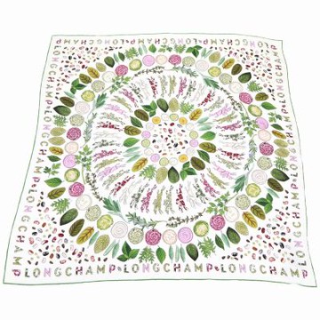 Longchamp 90 植物標本集印花真絲方巾/領巾(90CM-綠色)