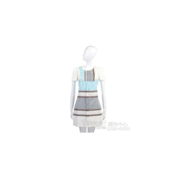 【買2送1】HS 薄荷色小香風拼接短洋裝 天空藍