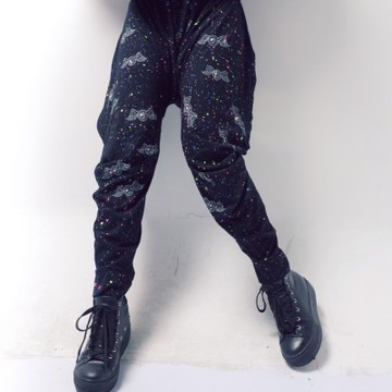 古著 滿版眼球翅膀側垂綴口袋彩點潑墨低檔棉質飛鼠褲