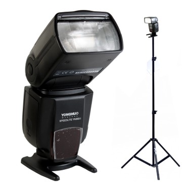 通用型大功率閃光燈 支援永諾的RF-603.602無線觸發 液晶顯示螢幕 增加頻閃功能 閃光指數最高可達58 附反射板、廣角擴散板 支援離機閃光觸閃