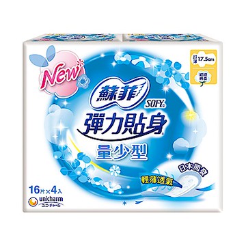蘇菲 彈力貼身量少超薄潔翼日用型(17.5CM)(16片 x 4包/組)