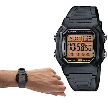 CASIO -10Year黑武士電子錶(W-800HG-9A)-黑x黃框/36.8mm / 考試錶