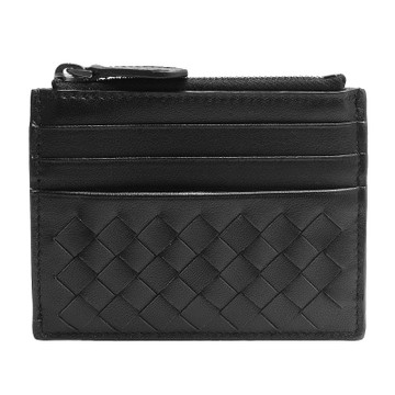 BOTTEGA VENETA 經典小羊皮編織拉鍊萬用卡夾/零錢包(黑)