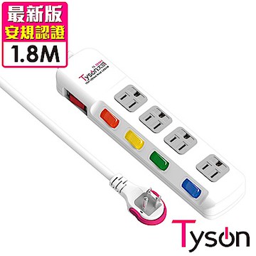 Tyson太順電業 TS-354AS 3孔5切4座延長線(拉環扁插)-1.8米