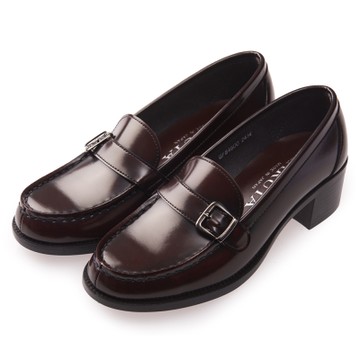 雅緻真皮樂福chunky粗跟鞋-山茶紅