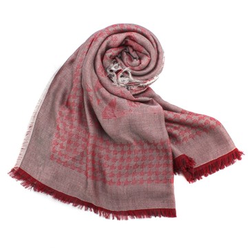 ARMANI COLLEZIONI 千鳥格紋箭形飾邊流蘇披肩圍巾-酒紅色