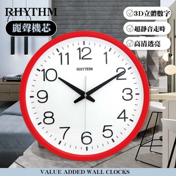 RHYTHM 日本麗聲時計 亮彩色系居家實用款超靜音壁掛鐘 白色