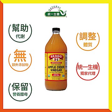 【統一生機】BRAGG有機蘋果醋(946ml/瓶)