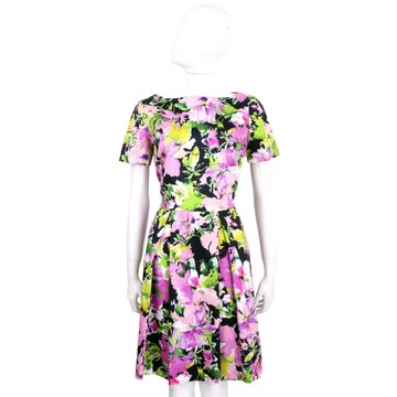 BLUGIRL 黑彩印花渲彩花朵棉質短袖洋裝