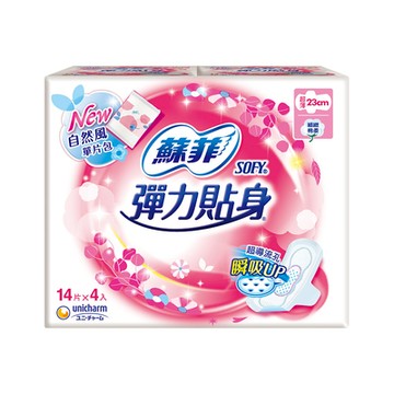 【SOFY 蘇菲】彈力貼身 棉柔 超薄(23cm)14片x4包