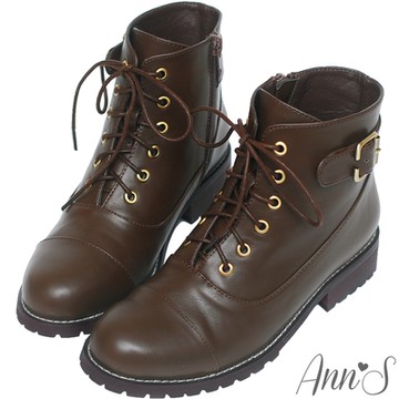 Ann’S無畏經典-帥氣6孔綁帶小羊皮短靴3.5cm-咖
