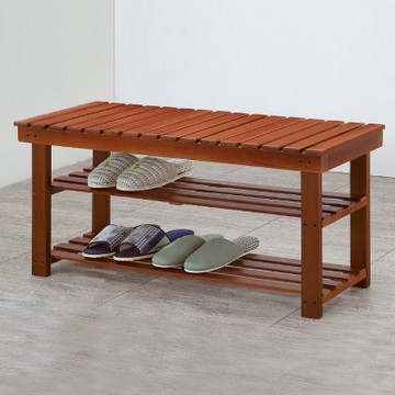 Boden-德溫2.6尺實木二層鞋架/穿鞋椅-90x30x43cm