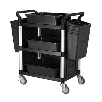 酒店餐車三層靜音推車收納掛桶收碗車帶垃圾桶多功能塑料餐廳飯店[DD160110]