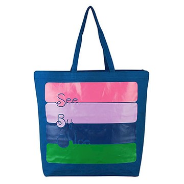 See By Chloe 經典LOGO塗鴉色彩造型帆布束口托特購物肩背包(大/藍)