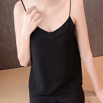 內搭衣 簡約拼接V領超細帶無袖背心 黑 M-XL ThreeShape